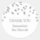 Gracias por las etiquetas de favor de un fiesta de Bat Mitzvah que puedes personalizar con tu nombre y texto. Patrón de confeti plateado divertido y elegante. Estos pegatinas hacen una elegante y sofisticada adición a los favores del partido Bat Mitzvah. (Por favor, tenga en cuenta que el patrón de confección sólo está impreso.)