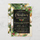 Envíe elegantes y atmosféricas invitaciones a fiestas de Navidades para su cena fiesta este año con estas invitaciones fáciles de personalizar / personalizares. El overlay semitransparente negro tiene un borde dorado sobre un fondo de baudias doradas colgando de un árbol de Navidad. Las esquinas están adornadas con estribos festivos de hoyo y abeto. Zazzle tiene muchas fuentes y colores de fuente diferentes para elegir. Tenga en cuenta que todos los productos de Zazzle están impresos digitalmente planos.
