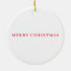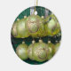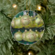Fotografía de primer plano de una canica amarilla impresa en un adorno cerámico de árbol de Navidad.