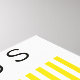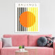 Un minimalista diseño de arte moderno al estilo Bauhaus de un círculo naranja con líneas verticales negras y amarillas.