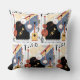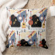 Tirar almohadas con un diseño inspirado en Bauhaus de instrumentos musicales, incluyendo un piano, guitarra, bajo, trompeta, platillos, banjo, tambor, micrófono y más. Obra de arte de Angela Hoard Dunn