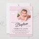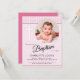 Esta invitación de bebe rosa a Baptismal incluye una cruz rosa y un fotograma oval para tu foto favorita de tu bebé.
