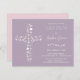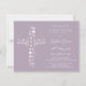 Este Baptism o Christening de bonito presenta una elegante cruz floral ilustrada que se parece a un delicado patrón de bordado. Ideal para la celebración religiosa de una niña, se puede personalizar con el nombre de su hijo y los detalles del evento. El color de fondo del frente es violeta, pero puede cambiarse a cualquier color que desee. La parte posterior presenta un patrón de líneas punteadas blancas sobre un fondo rosa, que también se puede personalizar según el color que desee.