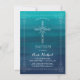 Esta moderna y elegante invitación al bautismo o al bautismo de un niño presenta una cruz blanca dibujada con un borde a juego. El fondo es una mezcla borrosa de azul, pero se puede personalizar a cualquier color de su gusto. El texto también puede ser personalizado para la ocasión religiosa especial de su hijo.