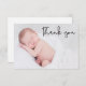 Personalizado con la foto del bebé en la parte delantera y el mensaje especial en la parte trasera. Este diseño utiliza un elegante tipo de letra manuscrita para un toque de sofisticación. Expresar su gratitud a los que asistieron al bautismo de su hijo.