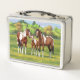 Una familia de caballos de laurel pintados en los pastos de verano.