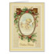 Imagen tradicional hermosa del bebé Jesús con las bayas del acebo y la frontera de la hiedra.