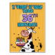 " "Lo reúno" era su 36.o cumpleaños!" vaca del b-día de la diversión que sostiene una tarjeta de felicitación de la torta de cumpleaños.