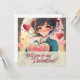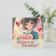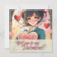 Manga colorida tarjeta de San Valentín con un encantador chica sosteniendo un corazón rojo y enmarcado por dulces detalles. La parte delantera muestra un encantador "¿Serás mi San Valentín?" en cartas lúdicas. Un gesto sincero lleno de amor y encanto.
