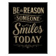 Bring warmth and inspiration to your walls with this “Be the Reason Someone Smiles Today” poster, featuring elegant sepia-toned typography on a dark background.