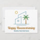 Esta bonita tarjeta de la compañía de bienes raíces tropicales cuenta con una moderna casa de playa azul con una fresca palmera costera y un sol de la isla. Personalizar estas tarjetas de mercadotecnia con su agente y nombre de negocio de la propiedad para clientes de compra de viviendas a lo largo de la costa.