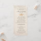 Hermoso programa de ceremonias de boda en la playa de color arena y tarjeta de fiesta nupcial con tema de conchas marinas.