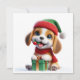 Este Beagle juguetón con un sombrero festivo y una caja de regalo captura la magia de las fiestas. ¡Ideal para sus saludos de Navidad!