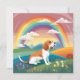 Una tarjeta de simpatía conmemorativa Beagle personalizada con una hermosa pintura de un Beagle en una colina paradisíaca con un hermoso arco iris sobre el fondo. Simbolizar al perro Beagle ha pasado el puente arcoiris al cielo doggy. Puedes personalizarlo con el nombre de tu propio perro Beagle o cualquier otro texto en el reverso de la tarjeta. Hace un homenaje especial o un regalo de solidaridad para cualquier amante del perro Beagle si su querido perro ha pasado.