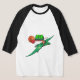 El color es muy bonito al natural, como la foto. El tejido es suave y de buena calidad. Sin defectos en el tintado, ni hilos sueltos o descosidos. Bien la impresión. Los bordes de las letras y el dibujo son nítidos, y el color contrasta muy bien con el de la camiseta.