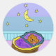 Ilustracion gráfico de un oso bebé durmiendo bajo la luna y las estrellas. Puedes personalizar este diseño y añadir tu propio mensaje personal para cualquier ocasión.