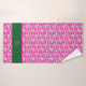 This modern & trendy, beautiful & colorful girly personalised Bath Towel Set features hot pink magenta roses with green leaves seamless pattern on black + white and green border with personalised stylish typography name Monogram. Perfect for your bathroom décor or unique & beautiful gift ideas for her who loves pink roses. You can easily change the text and colors or remove by customisation tools.