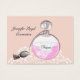 Frasco de atomizador de perfume inspirado en la cosecha de bonito en un fondo de encaje rosa y blanco; moda elegante tarjeta de visita doble para muchos negocios ya sea moda, cosméticos, maquillaje, perfume minorista... Fácil de personalizar con los datos personales de su empresa sin coste adicional.