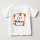 Un texto y un diseño de linternas en camisetas de Halloween, trajes para el cuerpo, y más con varias lámparas sonrientes y un texto de estilo infantil que dice "¡Primera Halloween!"