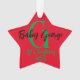 Bebé 1 adorno de árbol de Navidad unisex nombre de monograma mínimo diseño moderno rojo verde negro