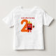Celebre el 2do cumpleaños de su niño con esta segunda camiseta adorable del cumpleaños. Ofrece un monstruo rojo lindo con un gorra y una magdalena del cumpleaños y un número gigante 2, y puede ser modificado para requisitos particulares con el nombre de su niño. Algunos elementos BabyStarDesign