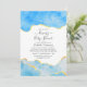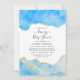 Invitación personalizable de ducha de bebé o boda con piedra de ágata azul bebé y falso papel de oro para los detalles de su evento.
