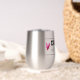 Diseñado con el tipo, "BEBE bien con otros", está dentro de un cartel gobernado con dos corazones, en ambos lados. Esta cita hace de este vaso de vino sin tallo un regalo de cumpleaños perfecto.