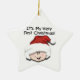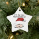 Puede cambiar fácilmente el año en este personalizable Bebé Blanco Primer Navidades adorno de bizcocho antes de pedir. Presenta un bebé con una gorra roja y un texto de estilo infantil que dice "¡Es mi primera Navidad!".