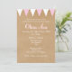 BABY BUNTING PINK BAPTISM CHRISTENING INVITATION. Esta bonito, bautismo rústico, bautizo o primera invitación a la comunión, presenta un fondo de papel kraft-al estilo, un lienzo rosa y blanco y una preciosa caligrafía de escritura con sombra de gota rosa. El reverso presenta filas de anclaje rosa y blanco sobre un fondo de papel kraft. Diseñado por Pure Piglet© en www.zazzle.com/purepiglet*.
