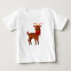 Un reno de nariz roja adorable con corbata de arco adorna esta camiseta blanca. Una linda camisa de Navidad para un bebé, este diseño también está disponible en un bib y una manta para bebés para completar el juego de regalos.