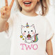 Celebra tu segundo cumpleaños con esta adorable camiseta de gato-unicornio. El diseño incluye un lindo unicornio de gatos sosteniendo un quequito. Personalízalo añadiendo el nombre de su hijo.