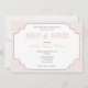 Por fin está aquí y es linda como puede ser, por favor únanse a nosotros para un sorbo y ver! Cálido sorbo y ver invitaciones para dar la bienvenida a una niña, con un fondo de chevron rosa.
