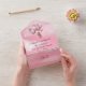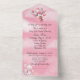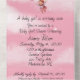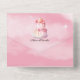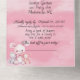 Esta es una invitación perfecta para enviar una invitación a una ducha de bebé. Niña flotando por un montón de globos en un fondo de nube rosa. Todos los detalles están en el centro de la tarjeta con la respuesta en la mitad inferior con una entrada desgarradora a un boleto de rifa de pañal, un lindo oso de peluche rosa y regalos terminan la invitación. El texto apropiado en la parte posterior de la invitación completa la información.
