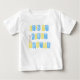 Un pequeño conejo blanco y un texto de azul y amarillo que dice "Es mi primera Pascua" en las primeras camisetas de Pascua del bebé, ¡camisetas de manga larga y trajes para el cuerpo!