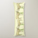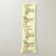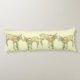 Esta almohada dulce de cuerpo presenta corderos lindos de apenas tres semanas de edad masticando hierba sobre un fondo amarillo.