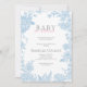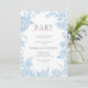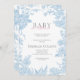 Invite a sus huéspedes con un encanto intemporal utilizando esta invitación a bañarse en la ducha de bebé azul claro Toile de Jouy. Con flores azules suaves y un patrón de toile francés clásico, este diseño de "Baby in Bloom" es perfecto para un niño con ducha de bebé con un toque vintage y elegante.