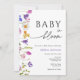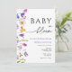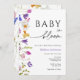 Invitación de Baby Shower con un borde de flores silvestres acuáticas y vegetación. Personalice su información o haga clic en "hacer clic en el personalizar más adelante" para ajustar el tipo de letra, el tamaño y el color.
