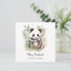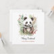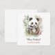 Tarjeta postal botánica navideña rústica de bebé panda adorable. Acuarelas rústicas y estilo de dibujo lineal en negro y blanco oso panda lindo con chal verde y blanco y hermosas plantas botánicas de invierno. Texto personalizado con una hermosa letra de moda.