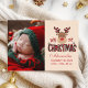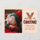 Celebre la primera Navidad de su bebé con esta acogedora tarjeta de festividad con un encantador reno grávido y suaves colores festivos. Diseñado con espacio para la foto de su bebé y el mensaje de vacaciones personalizado, este diseño es perfecto para capturar y compartir un hito mágico. La suave paleta roja, verde y beige le da un encanto rústico a su invitación. Ya sea que lo envies a tus seres queridos o que lo guardes en la caja de la memoria de tu bebé, este diseño está hecho para convertirse en un querido aguijón. Sube tu propia foto y hazla única tuya.