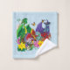 Los bebés dragones que incuban en un nido de huevos de dragón. Flores y mariposas en un fondo azul alrededor del nido de dragón.