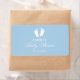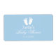Personalizado etiquetas con botellas de agua de ducha de color rosa pastel y blanco con huellas de pies. Pegatina de botella de agua DIY elegante y personalizada. Tipografía de escritura elegante para el nombre y la fecha de nacimiento de la niña o el niño. Úsalo como decoración elegante de mesa o gracias a los clientes del fiesta. Diseño neutro de pie de bebé con color de fondo de personalizable, es decir, azul pastel o amarillo suave.