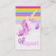 unicornio pintado a mano con barandilla de arcoiris gráfico rayado tarjeta de regalo de regalo de la ducha de bebé. Perfecto para que pidas libros en lugar de otros regalos. Aliente a sus invitados a que se diviertan escribiendo mensajes dentro del libro que regalan para que su hijo pueda apreciar, sepa qué invitado regaló el libro y disfrute leyendo ese libro durante muchos años. Original pintado de acuarela mítica original y lindo color rosa de unicornio y diseño gráfico de Sarah Trett para www.mylittleeden.com en zazzle.