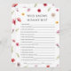 Celebra con esta tarjeta de juego personalizada Baby in Bloom Shower Who Knows Mmy, perfecta para ideas de ducha de bebé primaveral y temas de ducha de bebé primaveral. Diseñado para un tema de la ducha de bebé en flor, se adapta a las ideas de la ducha de bebé en flor y a la decoración de las ideas de la ducha de bebé en flor. Ideal para una ducha con flores silvestres, complementa la ducha de bebé con flores silvestres y la decoración de la ducha de bebé con flores silvestres. ¡Ideal para una preciosa ducha de primavera!