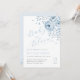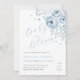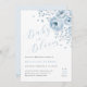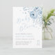Celebre la llegada de su pequeño bebé con esta invitación de Baby Shower Baby in Bloom, con un delicado diseño floral de acuarela con tonos azul claro y suaves adornos de flores silvestres. Esta elegante y moderna invitación captura la belleza de la primavera, con vegetación botánica y un encantador tema floral, perfecto para una ducha de bebé chica. Una elección atemporal para una celebración sofisticada y soñadora.