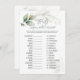 Bebé alrededor del juego de Baby Shower mundial. Este diseño presenta un follaje verde y dorado de acuarela. En la parte superior de la tarjeta - confeti de efecto oro. En la parte posterior de la tarjeta hay una clave de respuesta que se puede quitar. ¡Diviértete!