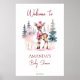 Bebé hace frío afuera chica venado bebé ducha de bebé modelo editable poster de bienvenida descarga digital instantánea para ducha de bebé con temática invernal. Cerveza de bebé con gorra rosa de invierno y árboles rosados de escarpa chicas de fondo de nieve plantilla de ducha de bebé señalización de bienvenida decoración de entrada personalizada