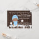 Bebé, hace frío afuera de la invitación a la ducha de bebé, con un adorable bebé de etnia étnica que usa un traje de gorra de nieve azul en un rústico bosque de madera y fondo de copos de nieve. Estos adorables chicos invitan a una ducha de bebé con copos de nieve para el invierno se personalizan fácilmente para tu evento simplemente añadiendo tus detalles.