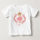 Una bailarina de cabeza roja gira en rosado con una corona floral envuelta alrededor de un moño. Esta camiseta puede ser personalizada con el nombre del niño o quizás un adjetivo divertido como el que usé como ejemplo en el diseño.