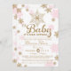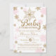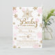 Los copos de nieve rosados y dorados rodean esta bella invitación perfecta para una ducha de bebé de invierno para dar la bienvenida a una niña, gemela o múltiplos. ¡Ve a la tienda por los artículos que coincidan!