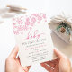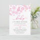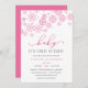 ¡Brrr! Las invitaciones de moda escarpadas para las duchas de invierno para bebés cuentan con un borde superior de copos de nieve en rosa, con "baby it's frie out" con letras rosas y grises. Personalice con los detalles de la ducha de su bebé menor bajo los campos de plantilla. Las tarjetas se revierten a rosa claro sólido.